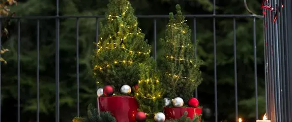 Weihnachten steht vor der Tür! Dieses Jahr in Form von immergrünen Zwergehölzen, die problemlos winterliche Temperaturen aushalten. So kommt nicht nur in den eigenen vier Wänden, sondern auch auf den im Winter meist kahlen Terrassen, Balkonen oder Eingangsbereichen festliche Stimmung auf. Hübsch dekoriert und kombiniert mit ausgewählten Topfpflanzen, steigern die grünen Outdoor-Künstler die Vorfreude auf die lang ersehnten Festtage.