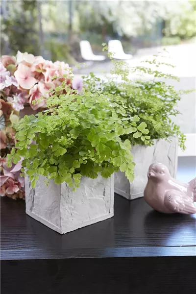 (Adiantum capillus-veneris), welcher auch als Venusfarn bezeichnet wird. Lassen Sie den Wurzelballen nie ganz austrocknen, aber auf Staunässe reagiert der Frauen-haarfarn empfindlich.