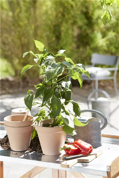 Ob knalliges Rot, Gelb, Orange oder Grün. Mit der Paprika (Capsicum annuum) bringen Sie kräftige Farben in Ihre Küche. Die Paprika stammt ursprünglich aus Mittel- und Südamerika und gehört zu den Nachtschattengewächsen. Sie bevorzugt einen sonnigen und windgeschützten Standort.