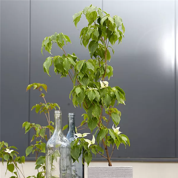 Violette Blütenwunder mit angenehm beruhigendem Duft verspricht der Flieder (Syringa). Dadurch bringt er Sie der fernöstlichen Welt gleich ein Stückchen näher. Der Japanische Blumen-Hartriegel (Cornus kousa) mit seinen auffälligen, spitz zulaufenden Hochblättern wirkt ebenfalls sehr exotisch im Garten.