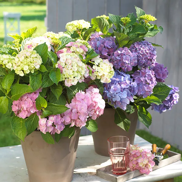 Bauernhortensien begeistern durch ihre Blütenfülle. Sie machen sich gut an einer Hauswand, bereichern das Bild eines Rosenbeetes oder einer blütenvollen Staudenrabatte, hier als Rahmen im Hintergrund. Aparte Rispen- und Samthortensien, herbstbunte Eichenblatt-Hortensien, kletternde Hortensien für Schattenplätze – wählen Sie für das ländliche Flair Ihres Gartens aus der überreichen Vielfalt und kombinieren Sie Hortensien geschickt, für eine lange Blütenzeit von Juni bis September. Und trocknen Sie die haltbaren Hortensienblüten ganz einfach im luftigen Halbschatten - für ganzjährigen Vasen- und Schalenschmuck, den Sie durch Besprühen sogar einfärben können.