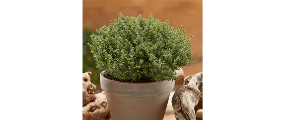 Der Thymian (Thymus vulgaris) gilt als vielseitiges Heil- und Gewürzkraut. Mit seinem unverkennbaren Geschmack würzt es zahlreiche Speisen und ist z.B. in der italienischen Küche eine unverzichtbare Zutat. In der Naturmedizin ist die Pflanze zudem als hervorragendes Heilkraut bekannt. Es hilft gegen Erkältung, Husten und Magenschmerzen, da es antibakterielle und schleimlösende Eigenschaften besitzt. Hildegard von Bingen empfahl das Heilkraut bei Keuchhusten oder Atemnot. Ein Thymianbad ist zur allgemeinen Stärkung, bei Rheumabeschwerden oder Hauterkrankungen bekannt. Man übergießt ca. 100 g des Krautes mit kochendem Wasser, lässt es etwa 15 Minuten ziehen, seiht ab und gibt das Thymianwasser ins Vollbad. Bevorzugter Standort: sonnig